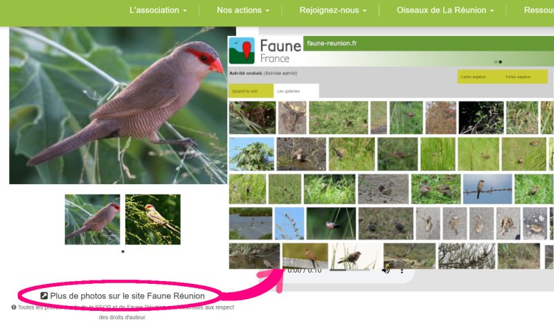 Accès direct aux milliers de photos d'oiseaux de Faune-Réunion